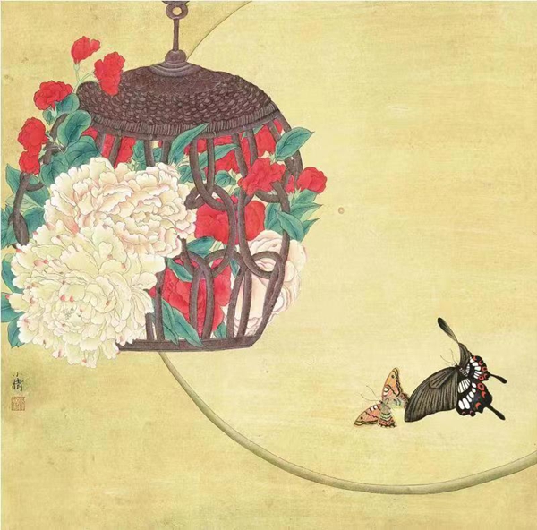 2019年 花间系列 68×68cm 纸本设色