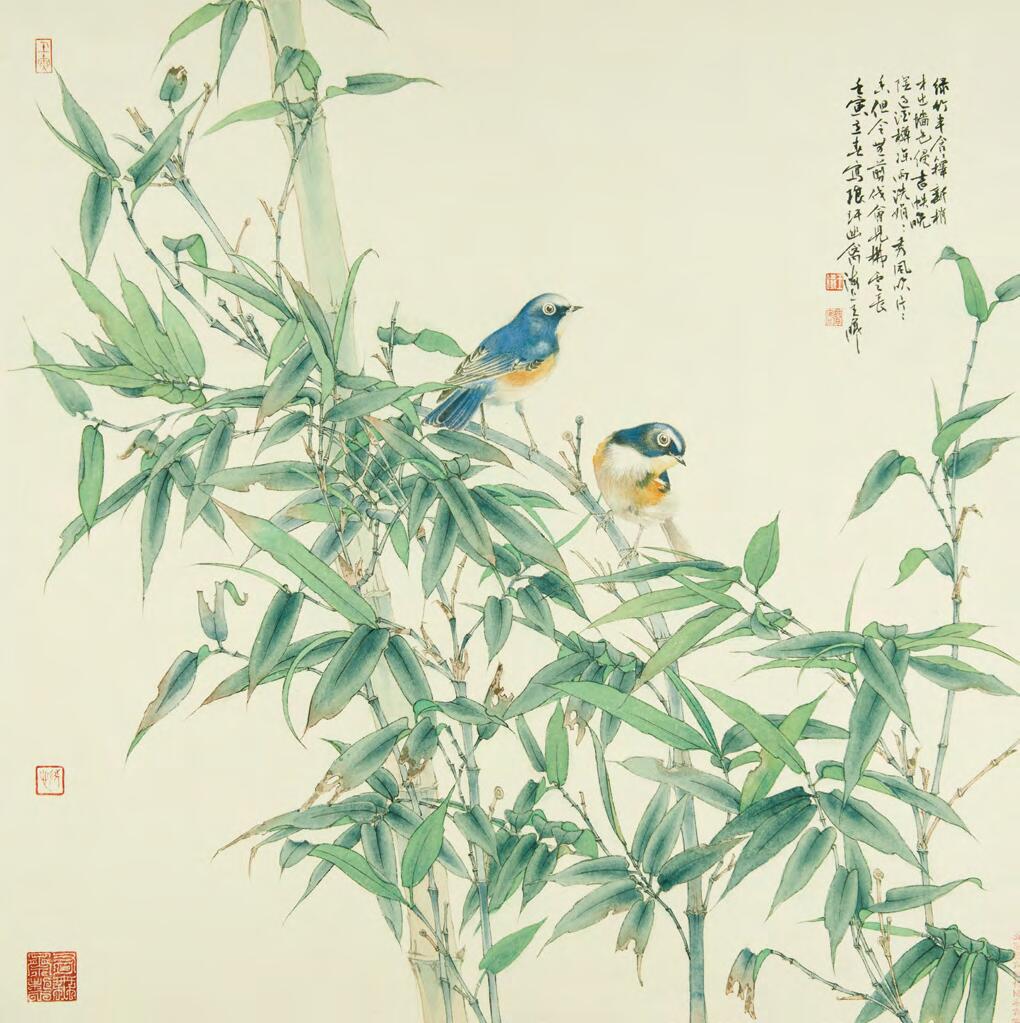 《竹阴幽禽》 66×66cm
