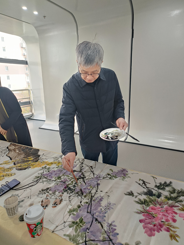 接下来请这次虹口区迎春书画精品展策展人、上海中国画花鸟画艺术沙龙召集人夏建峰发言,夏老师首先感谢各位参展艺术家,在短时间内,拿出精品力作对本次展览的支持!