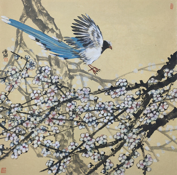接下来欣赏上海中国画花鸟画艺术沙龙书画家作品