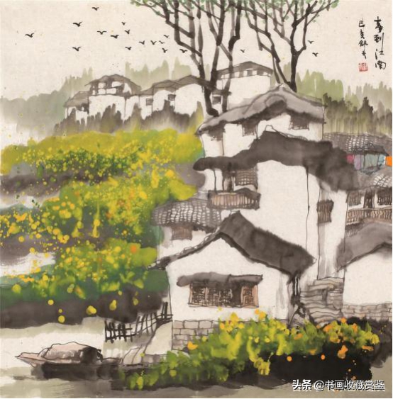 我画老房子的标志性的第一幅画就是入选全国八届美展的工笔画“悠悠水乡情”,它把我对老房子的感情和感受都画了进去。我画的是一个江南小镇,砖木结构的老房子层层叠叠,河上有拱形的石桥、廊棚,廊棚下凉晒着衣物,老先生在廊棚下悠然地看着报,偶尔有骑自行车的经过廊棚,有挑担的小贩在桥上经过,两三个妇人在家门口说着闲话,一只机帆船在河道里驶过,船上男男女女有说有笑,他们在镇上采购了商品满载而归,炊烟在屋顶上淡淡地弥散着,远处作坊里的人们在忙碌着,两艘停泊在河边的小船正在启动……一派悠然的江南水乡风光。