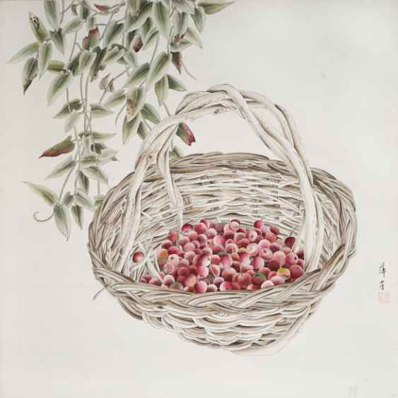 吴桂龙《蝴蝶草莓图》国画 65×65cm