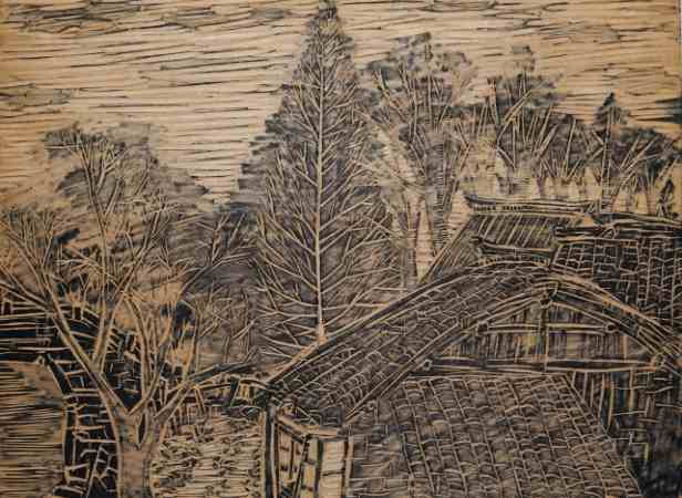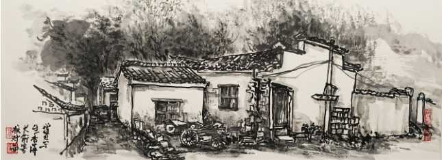 夏建峰《奉贤青村古镇》国画 68×68cm