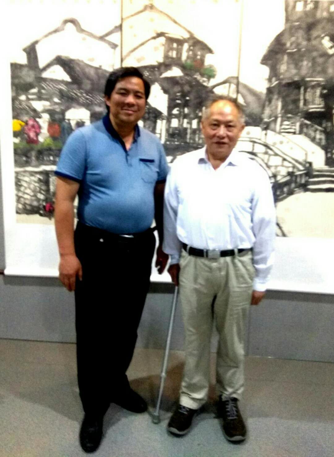 前几天听说:曹老师和书法家刘小晴老师艺术联展在浦东张江戏剧谷开幕,由于我最近比较忙,没有能够赶上展览的开幕式,对于曹舒天老师,我们是在今年年初去云南采风的时候认识,并且熟悉,由于曹老师脚不是很方便,我是领队,有责任照顾他,所以我们两个同住一起,曹老师是一位创作型的大画家,不管是山水、人物还是古建筑,在他手下都栩栩如生,当时我在网上浏览了曹舒天老师的介绍,他笔下的江南水乡的作品是一流的。