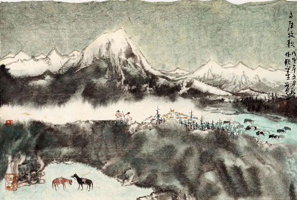 肖凡/作品 高原牧歌 23cm×34cm 2017年 纸本水墨