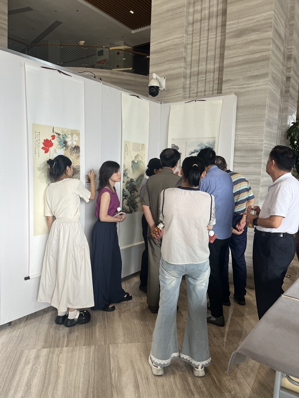 活动现场,参与者或驻足细观名家笔触,或拍照记录构图精髓,更有爱好者即兴勾稿临摹,沉浸于艺术创作之中。自由交流区内,大家围绕笔墨技法、创意表达等话题展开讨论,现场氛围热烈。胡学东还进行了现场示范,进一步拉近艺术与公众的距离。