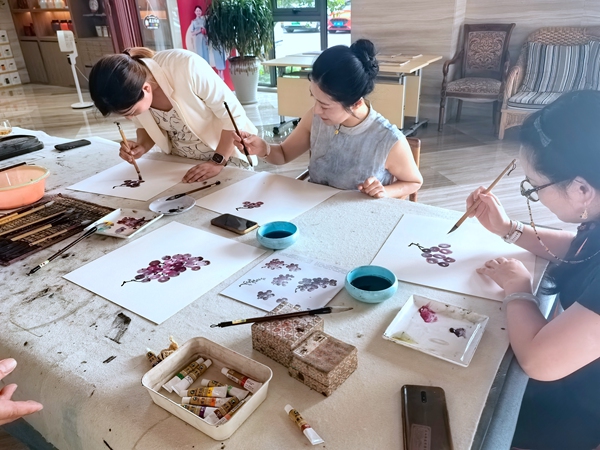 尽管天气酷热,学员们的学习热情丝毫不减。其中不少人是第一次接触毛笔绘画,但在夏老师的耐心指导下,大家很快掌握了基本技巧,并完成了自己的作品。活动结束时,每位学员都创作出了一幅完整的画作,现场氛围热烈而愉悦。