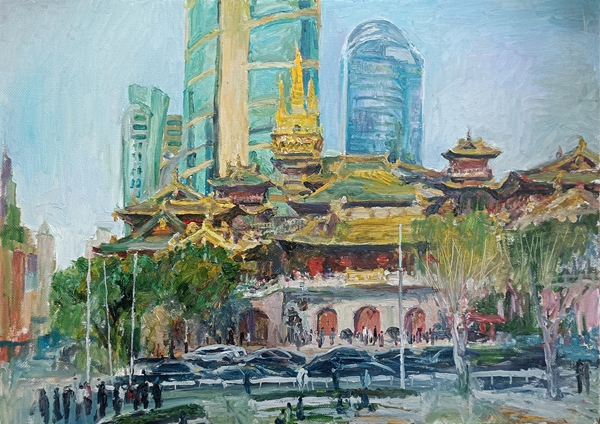 《三画静安寺》布面油画50x70cm 2025.1.22.