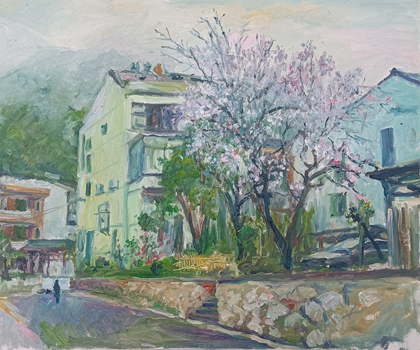 《桥对岸的红房子》布面油画  50x60cm  2023.4.